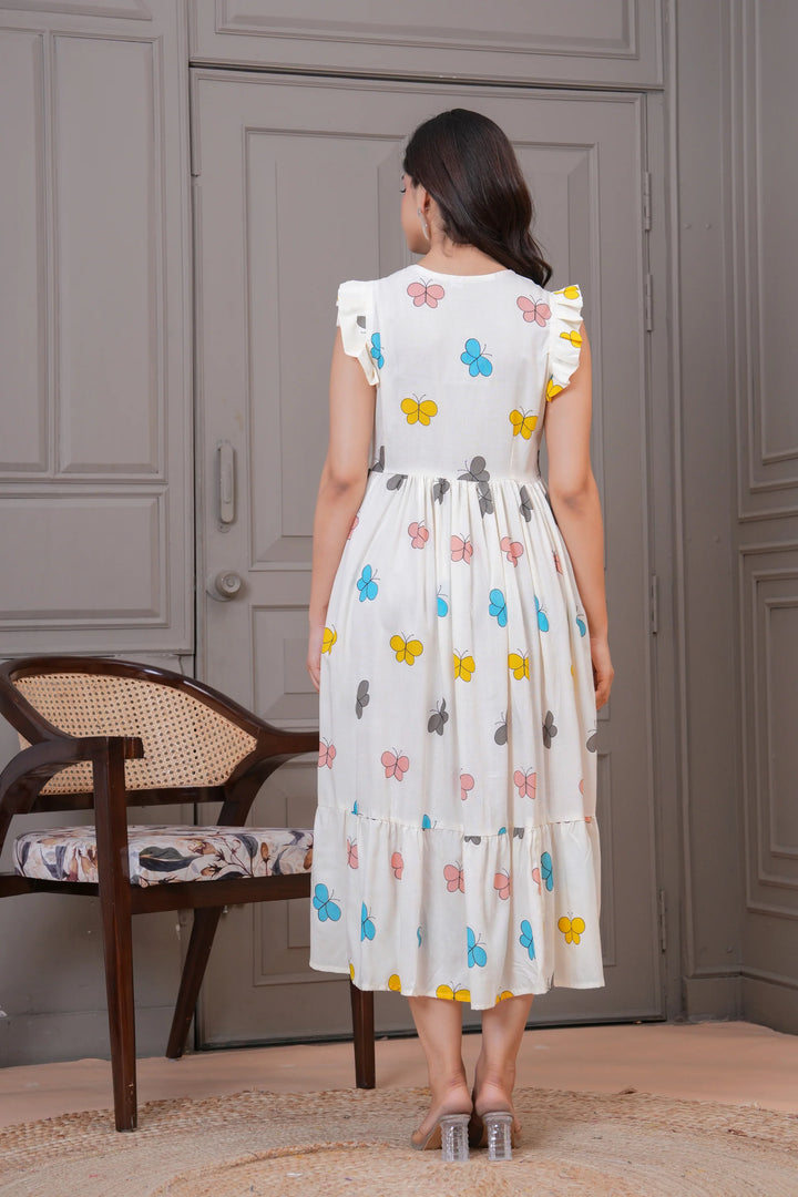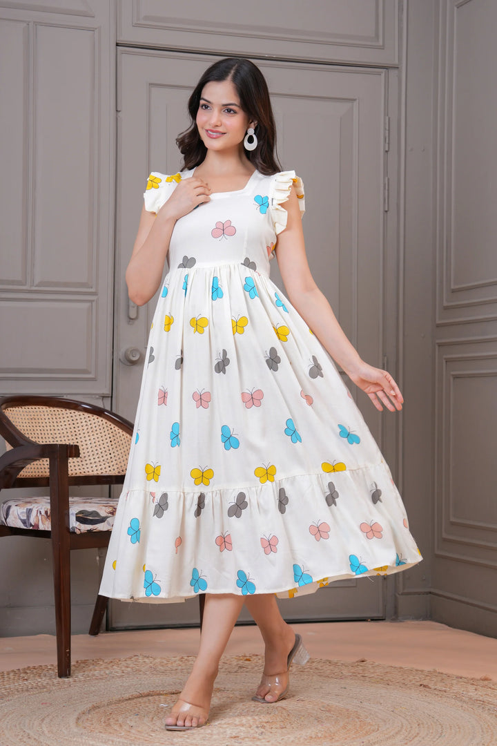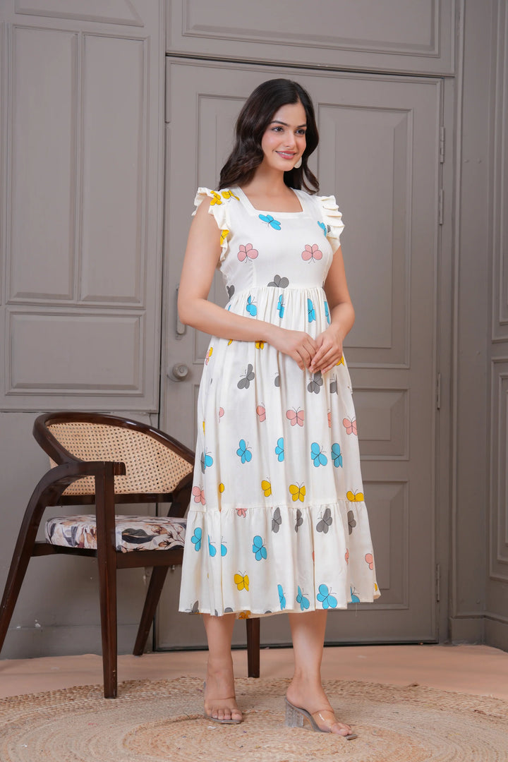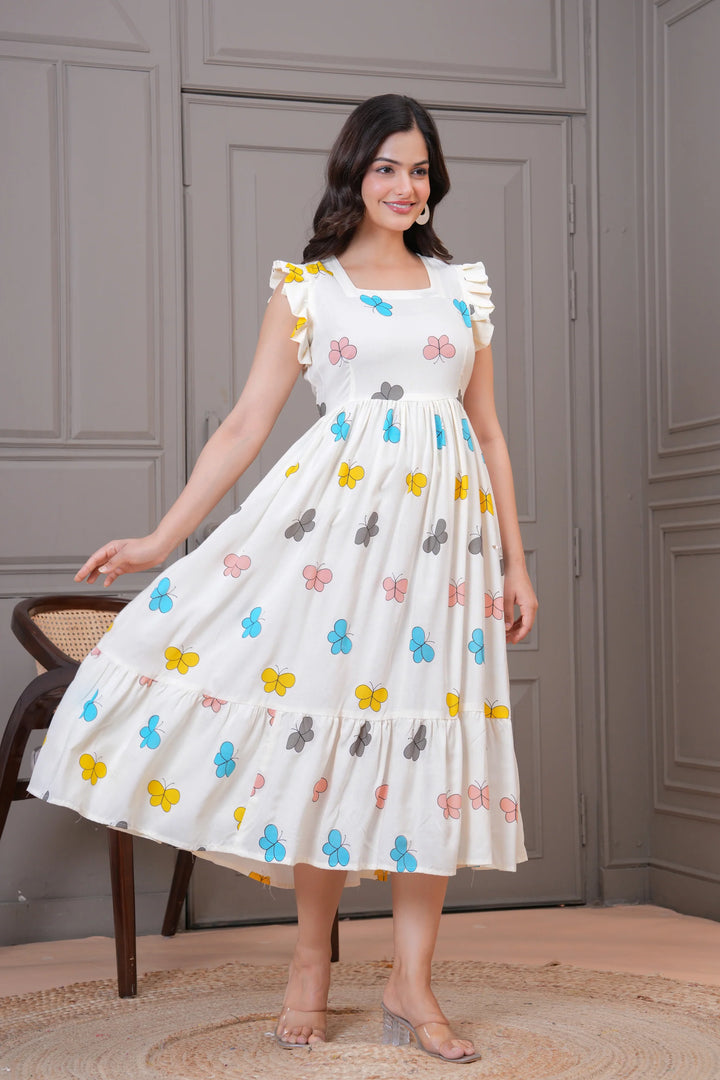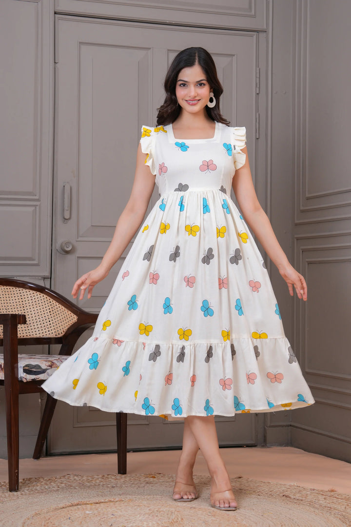 NESH CREATION White Rayon One-Piece Western Dress for Women