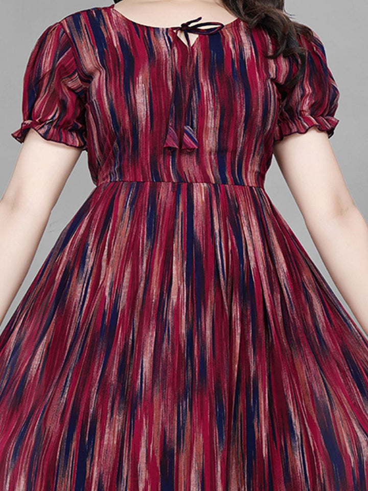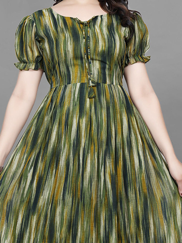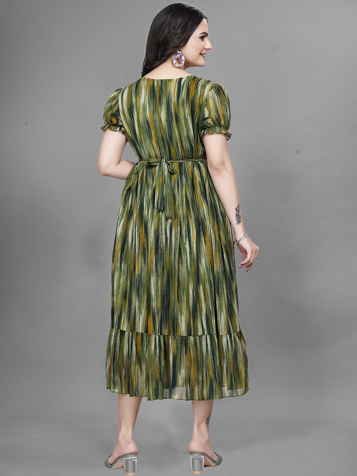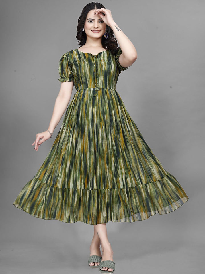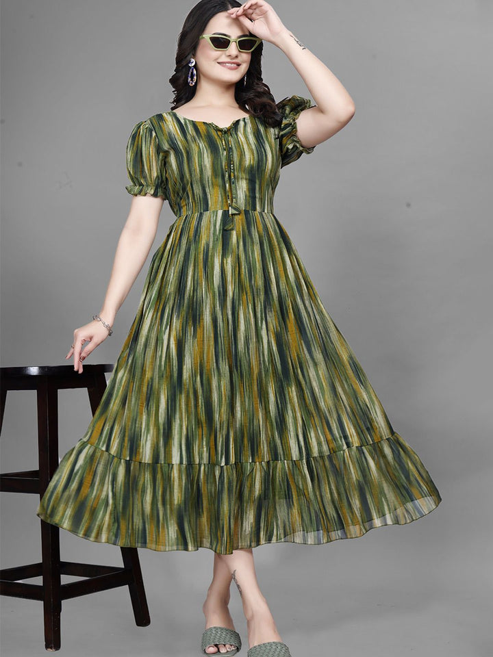 NESH CREATION Women's Georgette Western Dress | Printed One-Piece Gown with Puff Short Sleeves