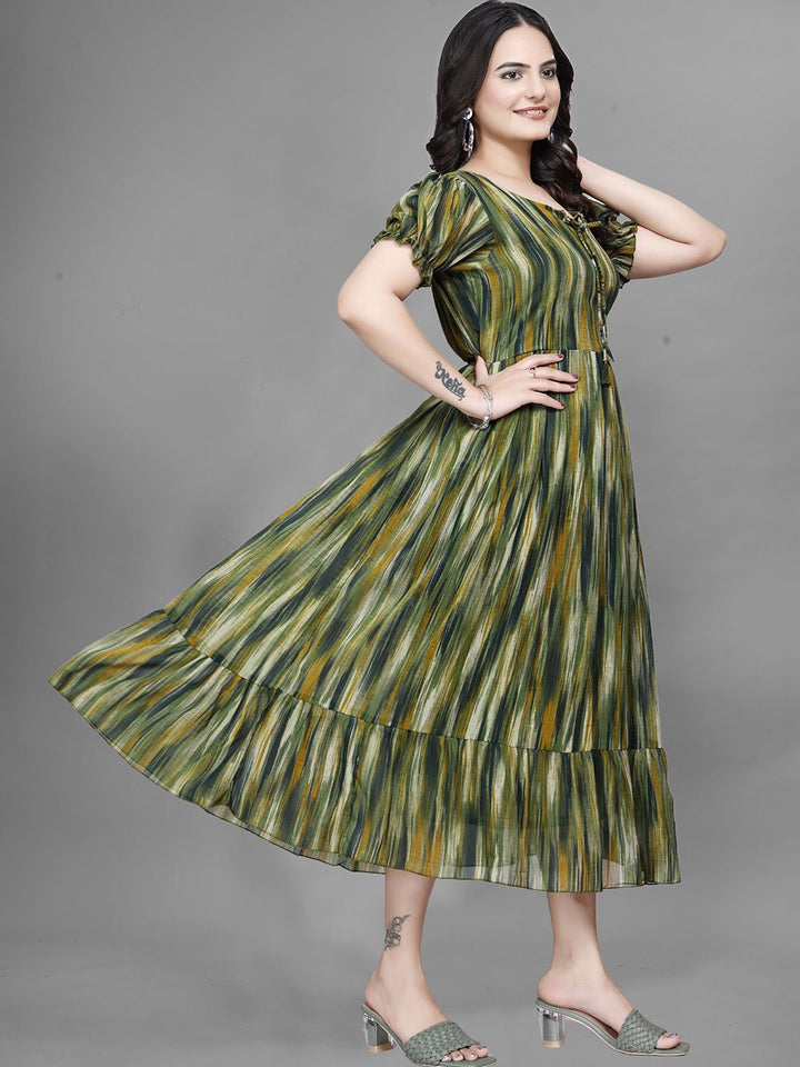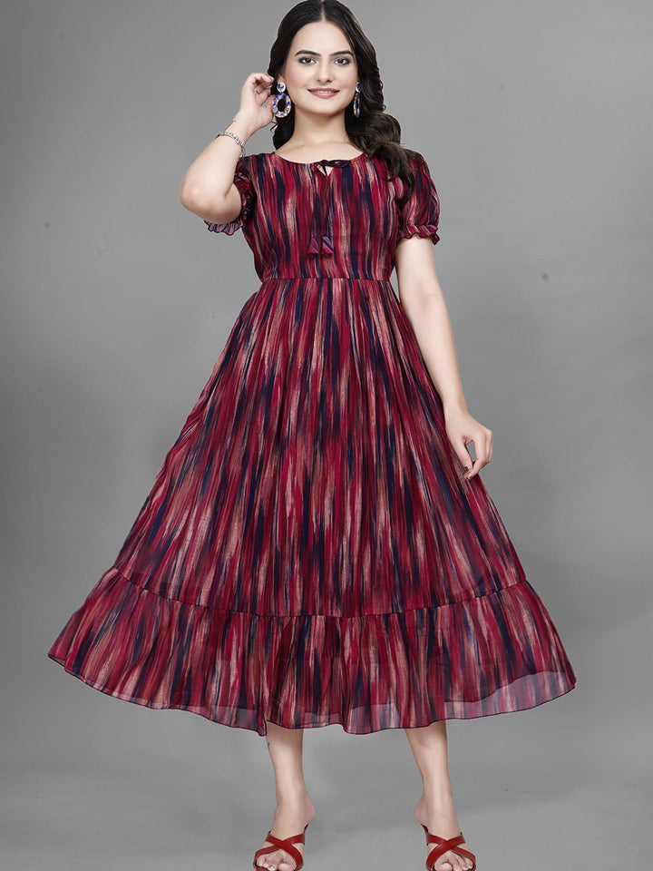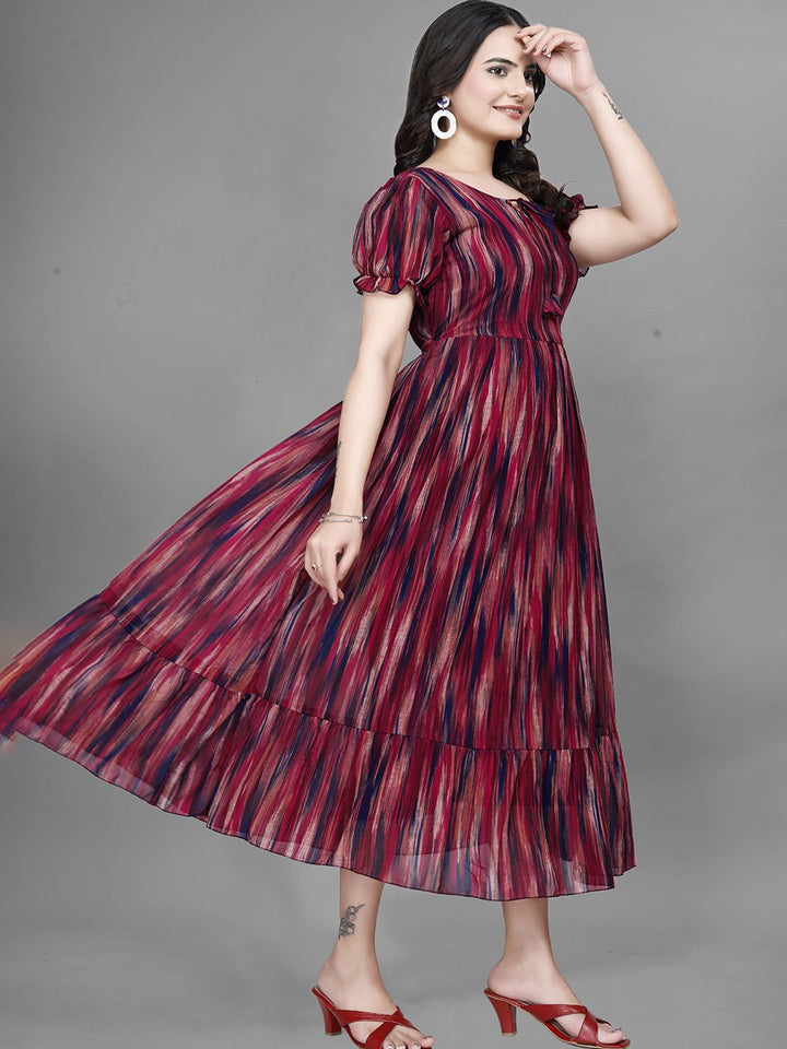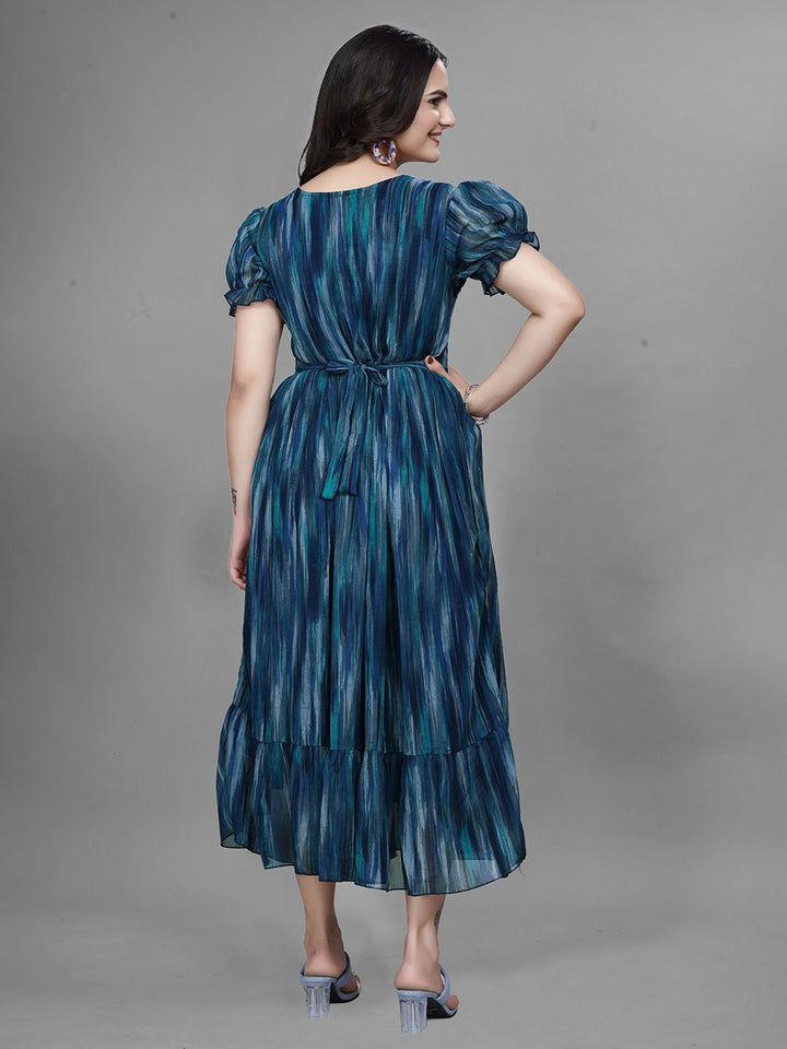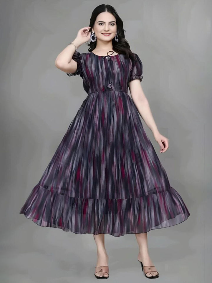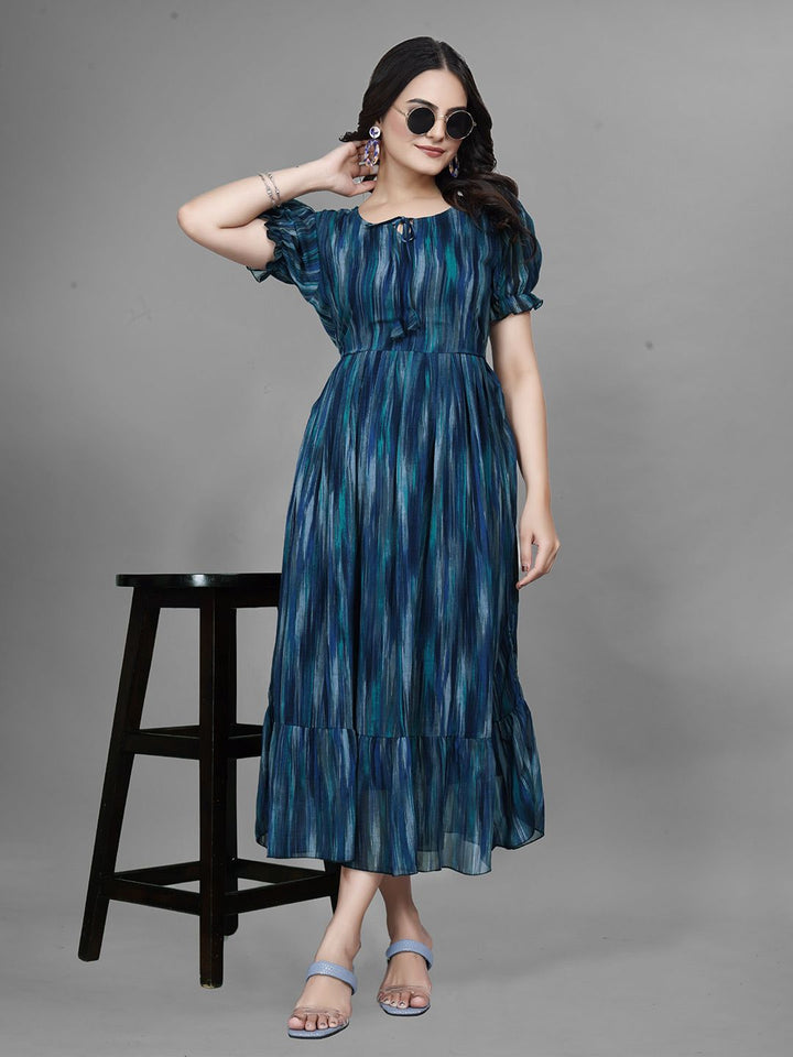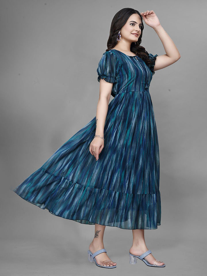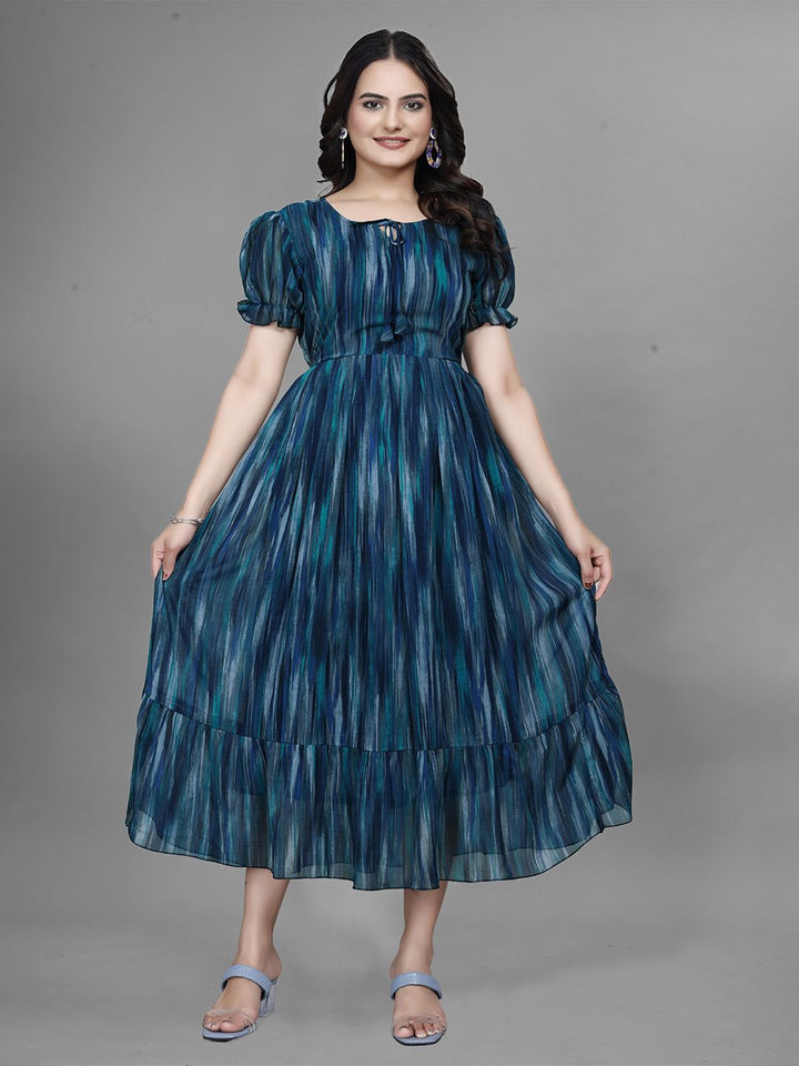 Elevate your wardrobe with this NESH CREATION women's georgette western dress, designed for effortless style and comfort. Crafted from lightweight georgette fabric, this printed one-piece gown features elegant puff short sleeves that add a subtle statement. Available in four versatile colors, it offers both grace and versatility for various occasions, ensuring you stay chic with ease.